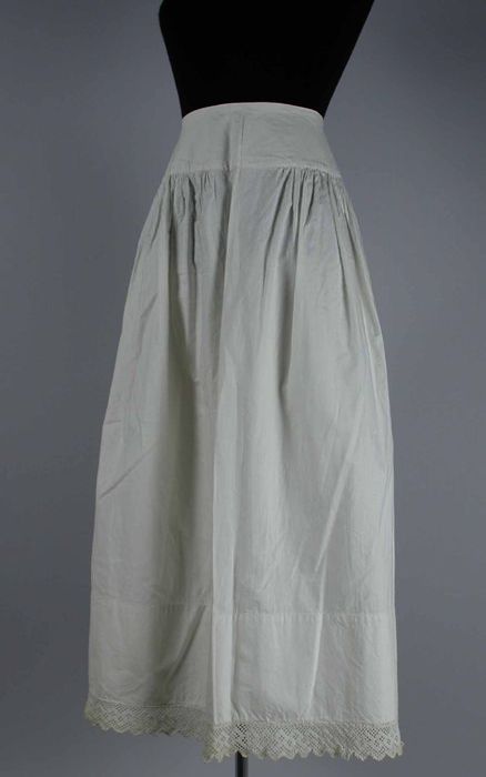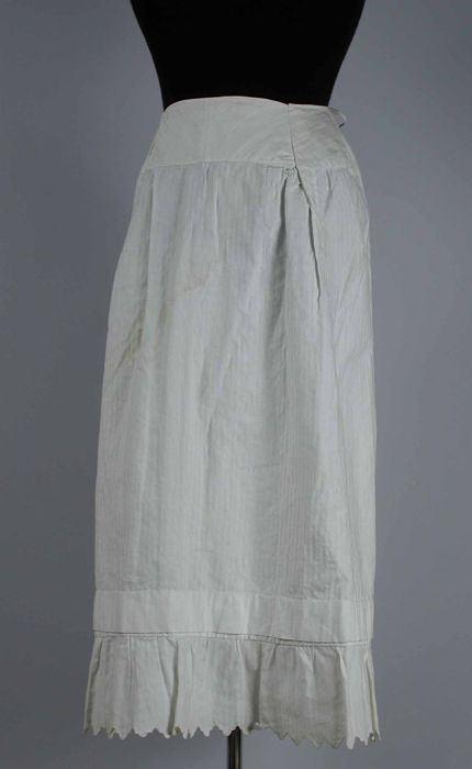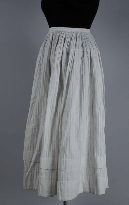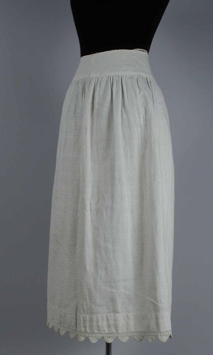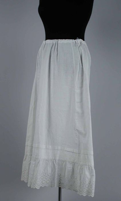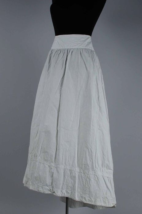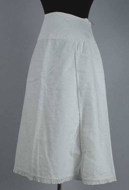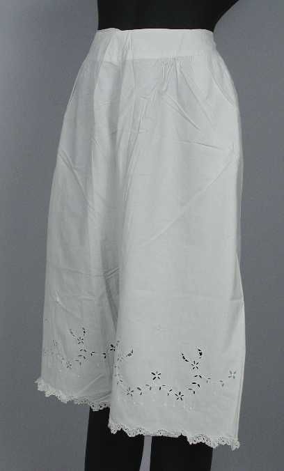 Halflange wijde onderrok van wit keperkatoen, geschu...