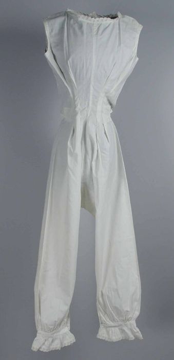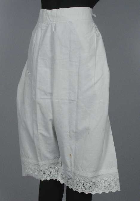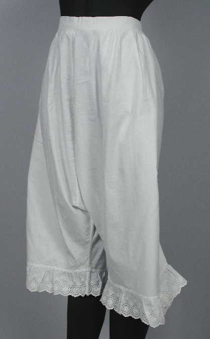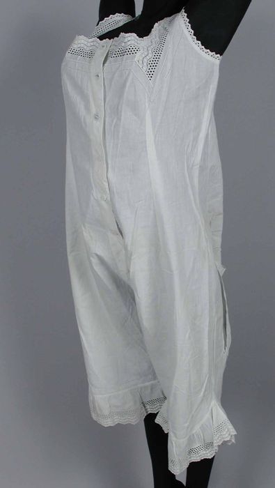 Witte onderbroek met pijpen, onderaan versierd met b...