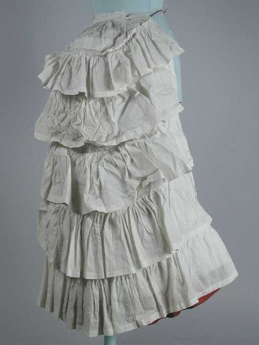 Halflange wijde onderrok van wit katoen, boven de ro...