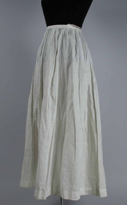 Lange wijde onderrok van dik wit katoen met ingeweve...