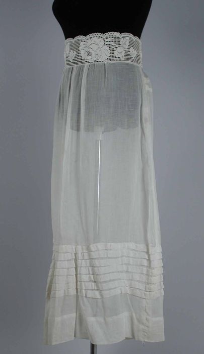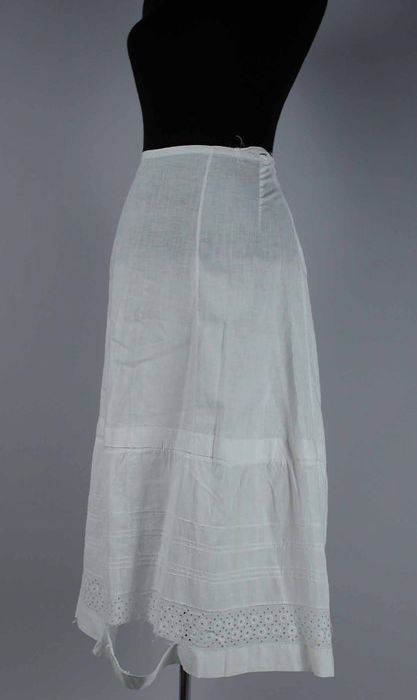 Lange witte onderrok, onderaan met oprijgsels en str...