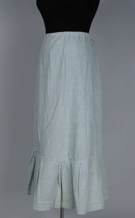 Lange wijde onderrok van blauw-wit gestreept katoen,...