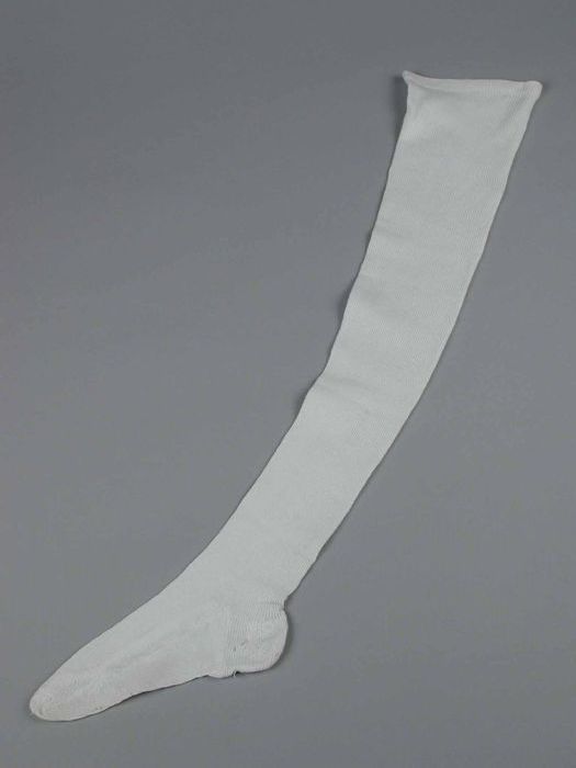 Paar lange witte kousen van katoen in ajour gebreid