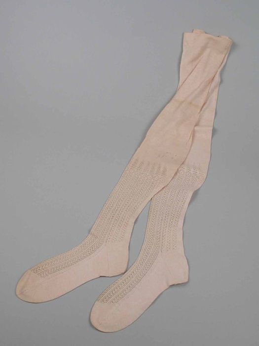 Paar lange roze kousen van fijn tricot katoen met ka...