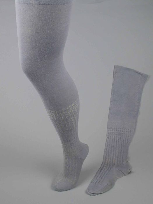 Paar lange blauwgrijze kousen van fijn tricot katoen...