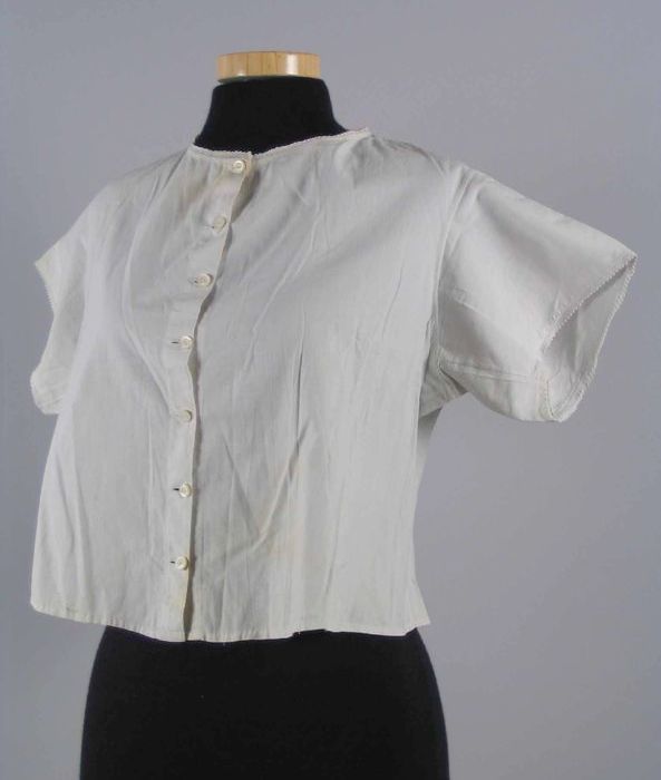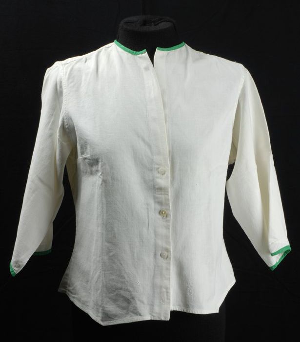 Blouse, wit katoen, groene bies, gemaakt uit herenov...