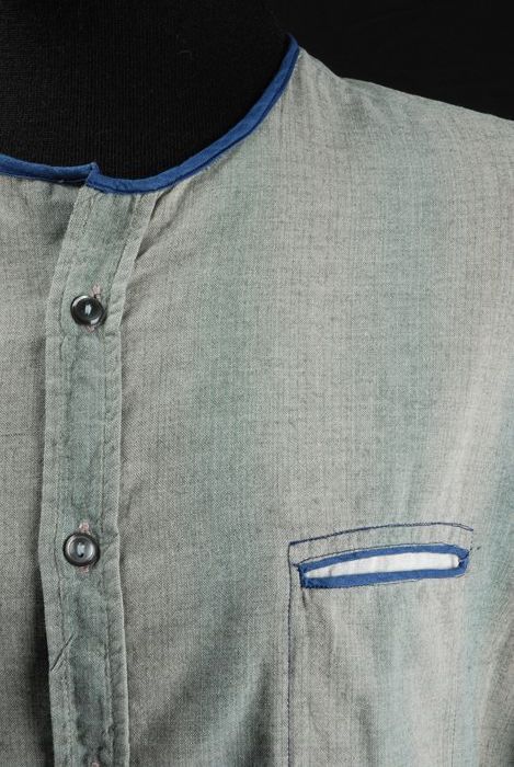 Blouse, grijs-groene katoen, blauwe bies, gemaakt ui...