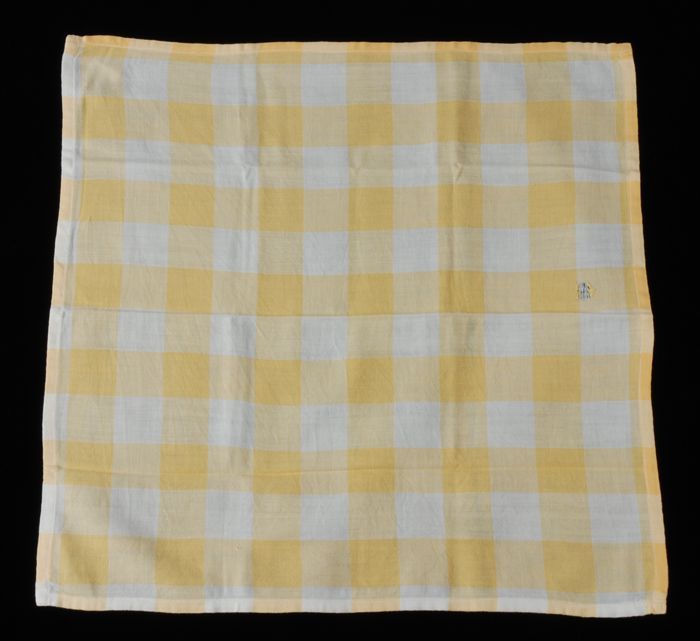Zakdoek van geel en wit geblokt katoen, gemaakt uit ...