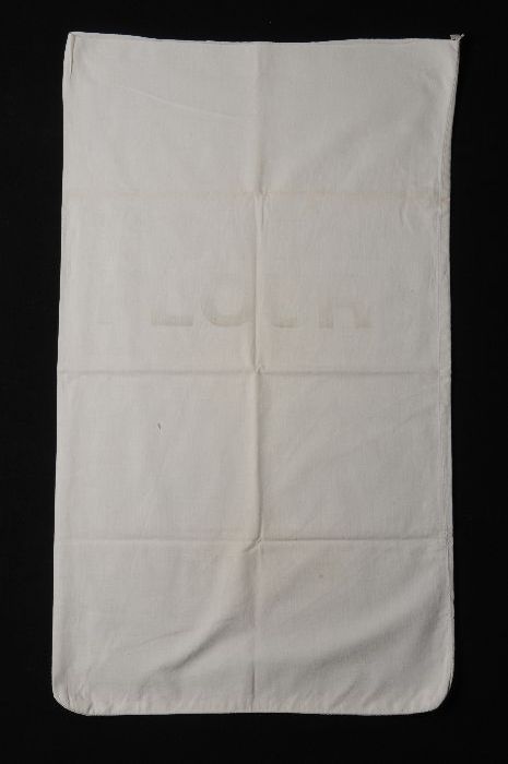 Kussensloop, oorspronkelijk oude meelzak, wit katoen...