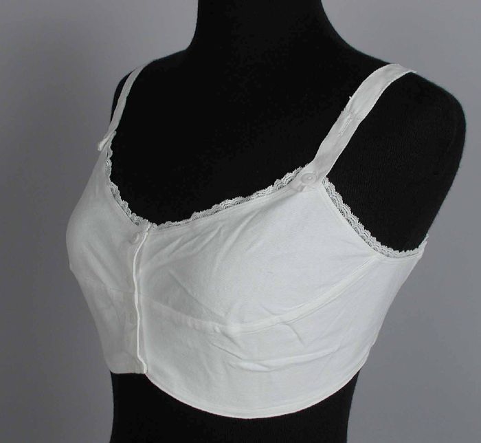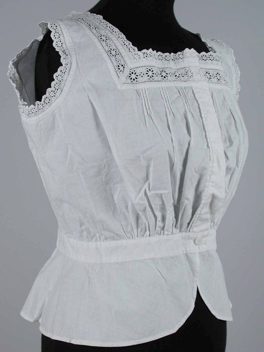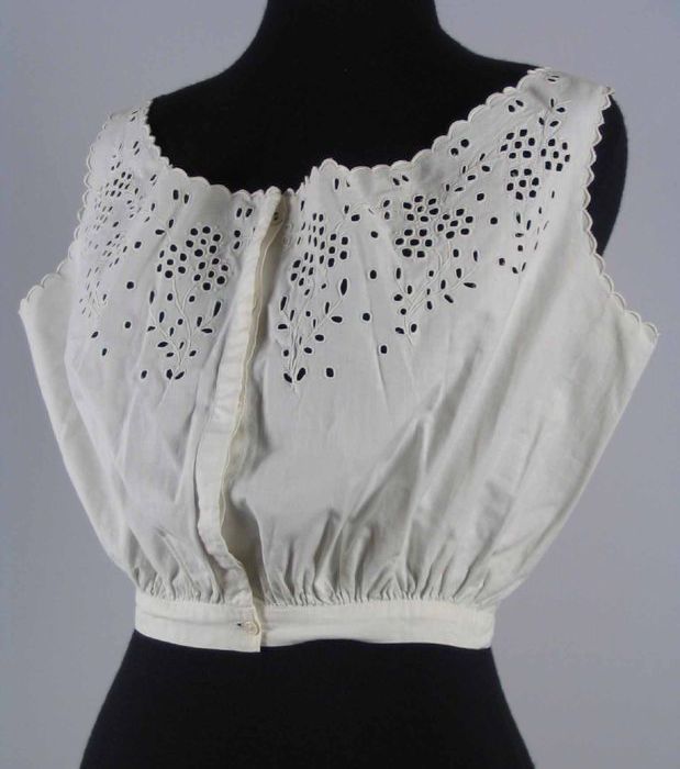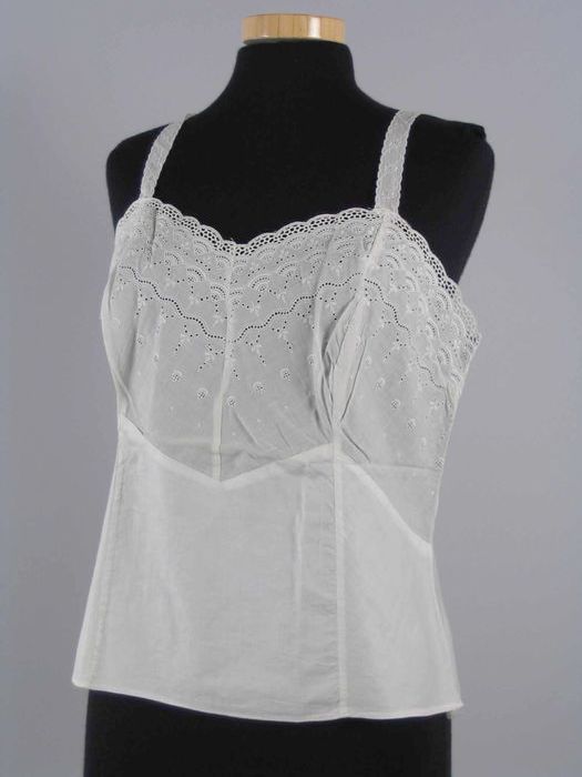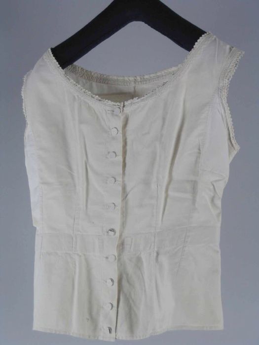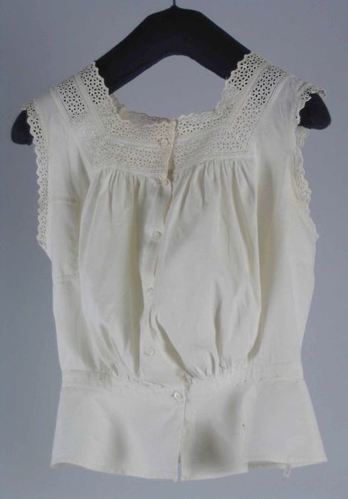 Korte onderjurk van crèmekleurig batist met een bust...
