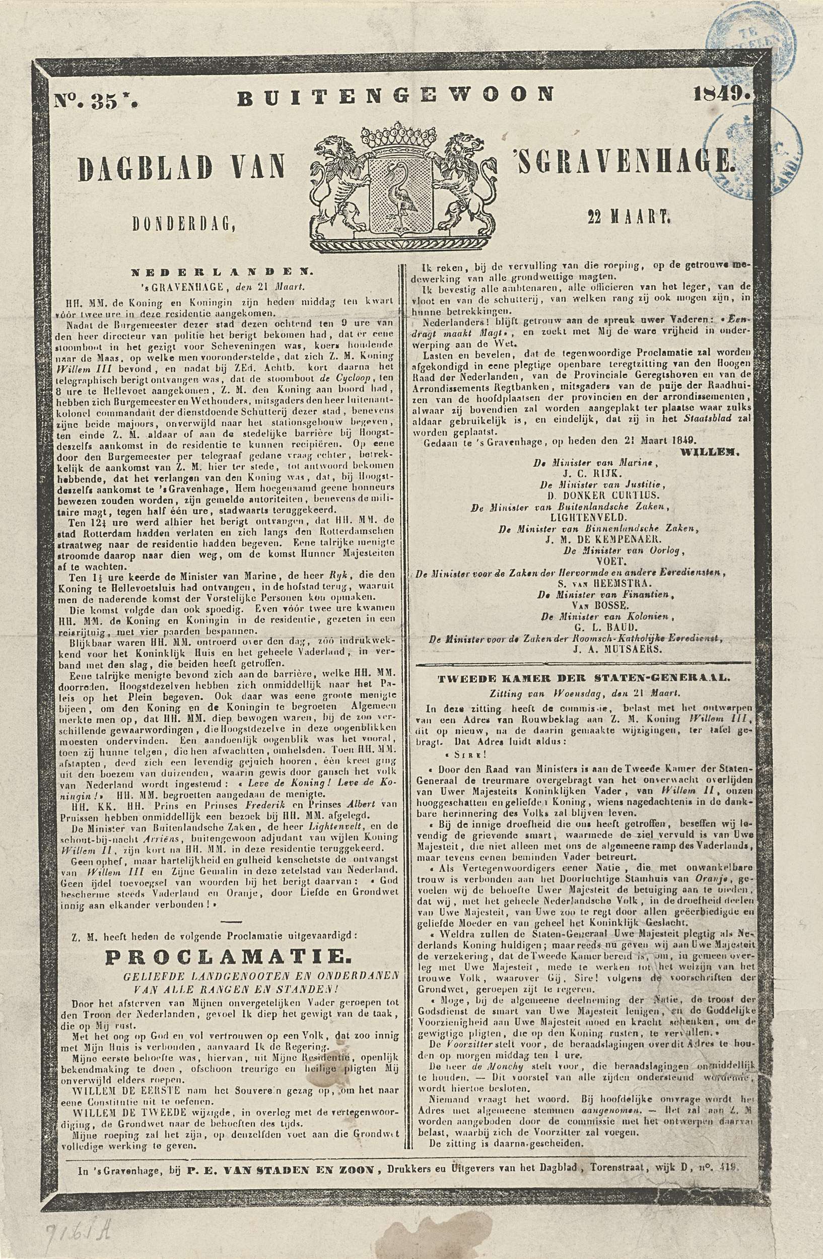 Buitengewoon Dagblad van 's Gravenhage. Donderdag, 2...