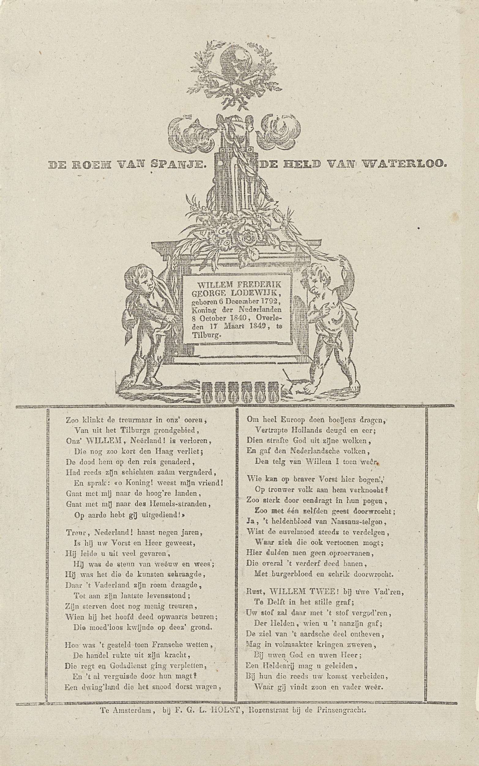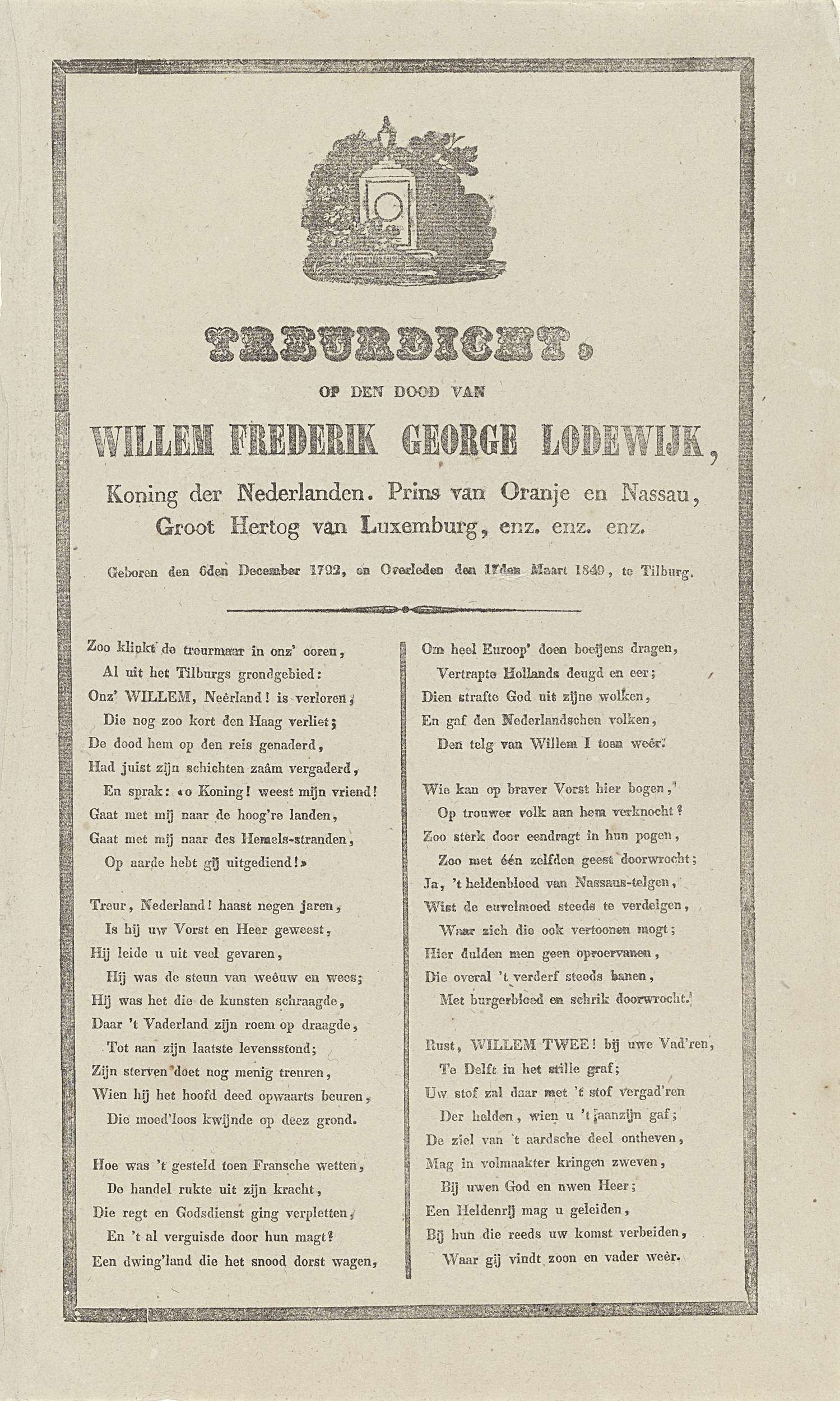 Treurdicht op het overlijden van koning Willem II, 1849