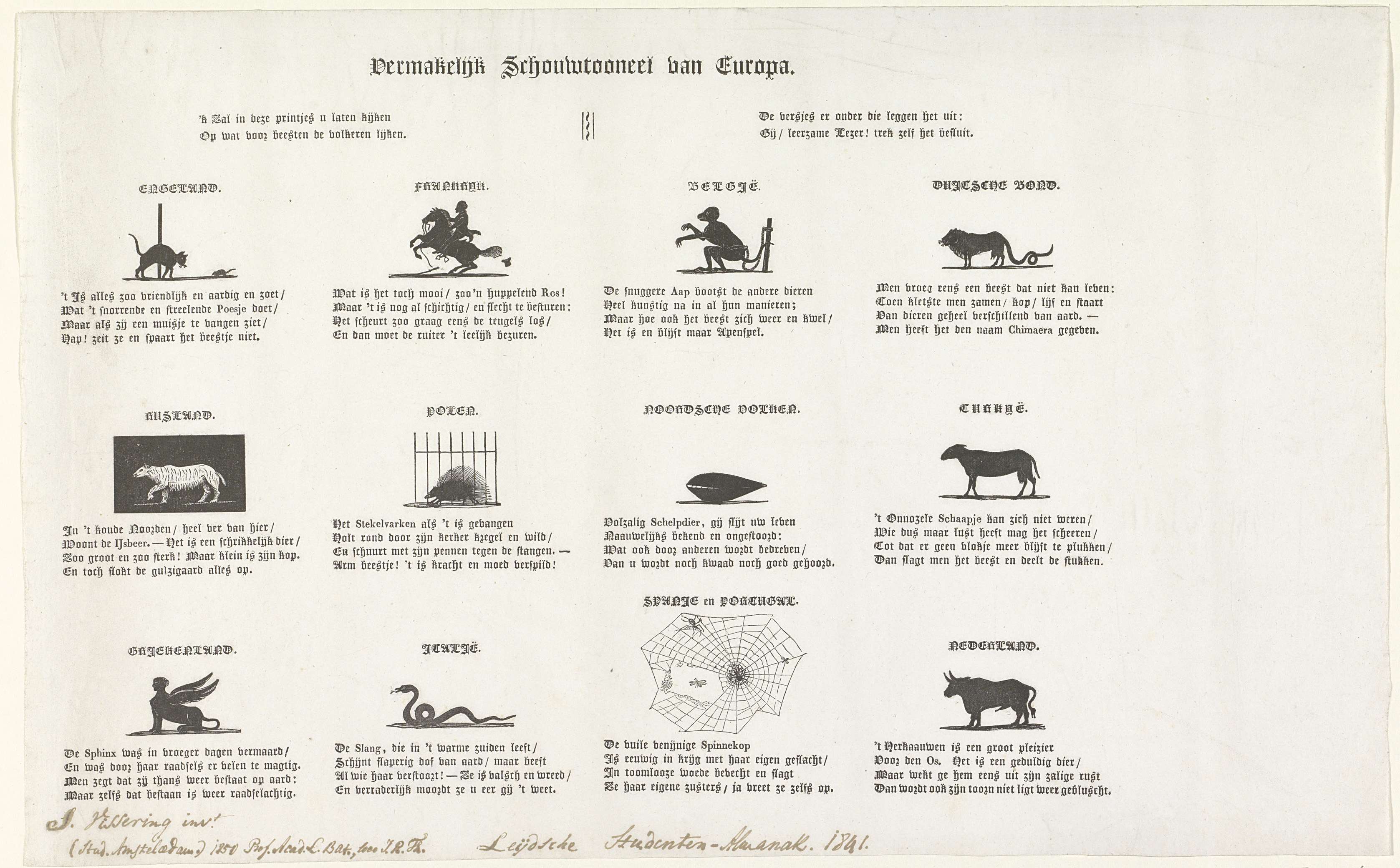 Spotprent uit Leidse studentenalmanak, 1841