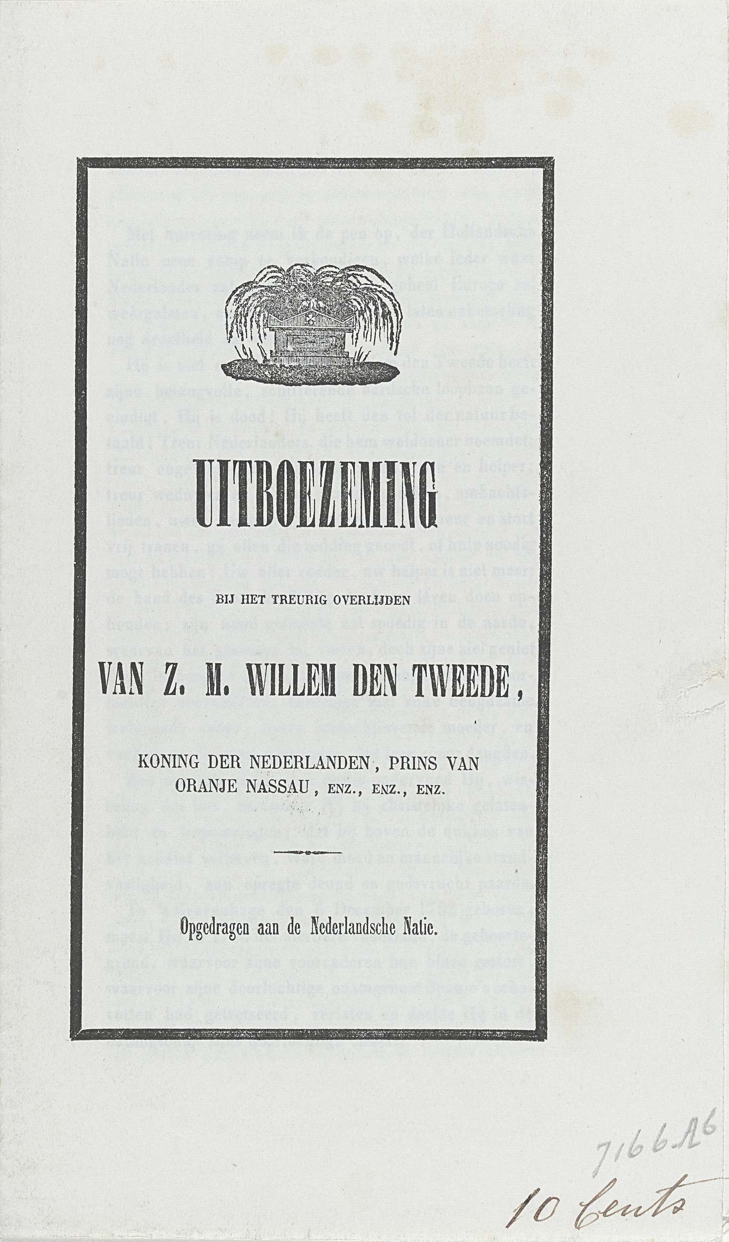 Uitboezeming bij het treurig overlijden van Z.M. Wil...