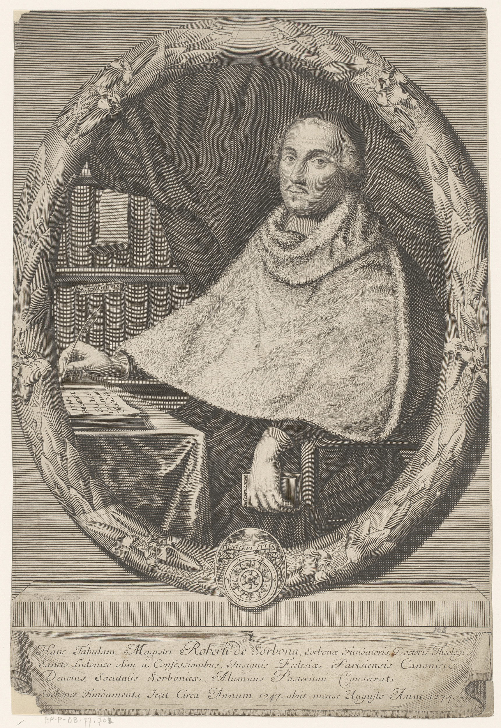 Portret van Robert de Sorbon aan zijn schrijftafel