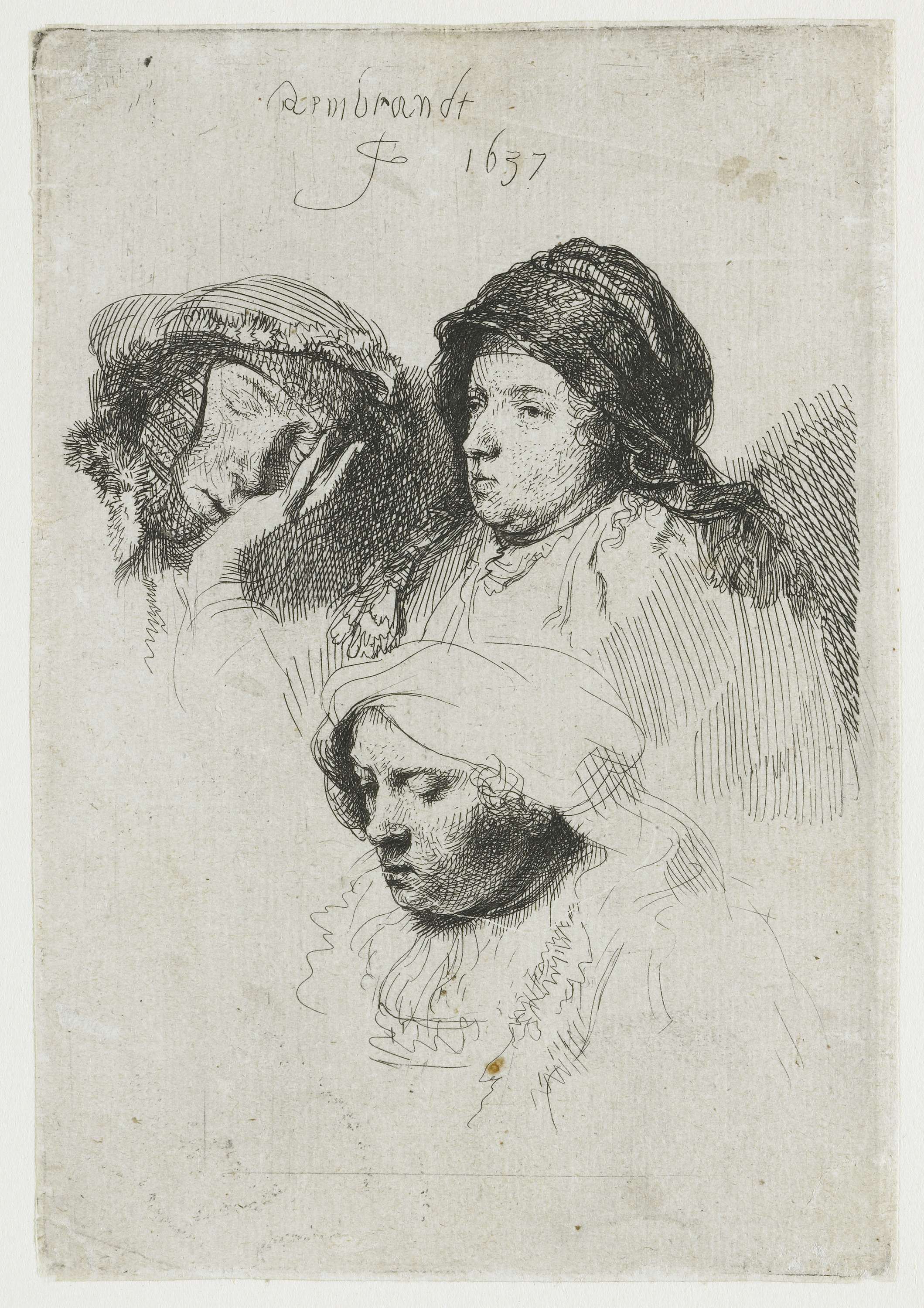 Three heads of women: one asleep