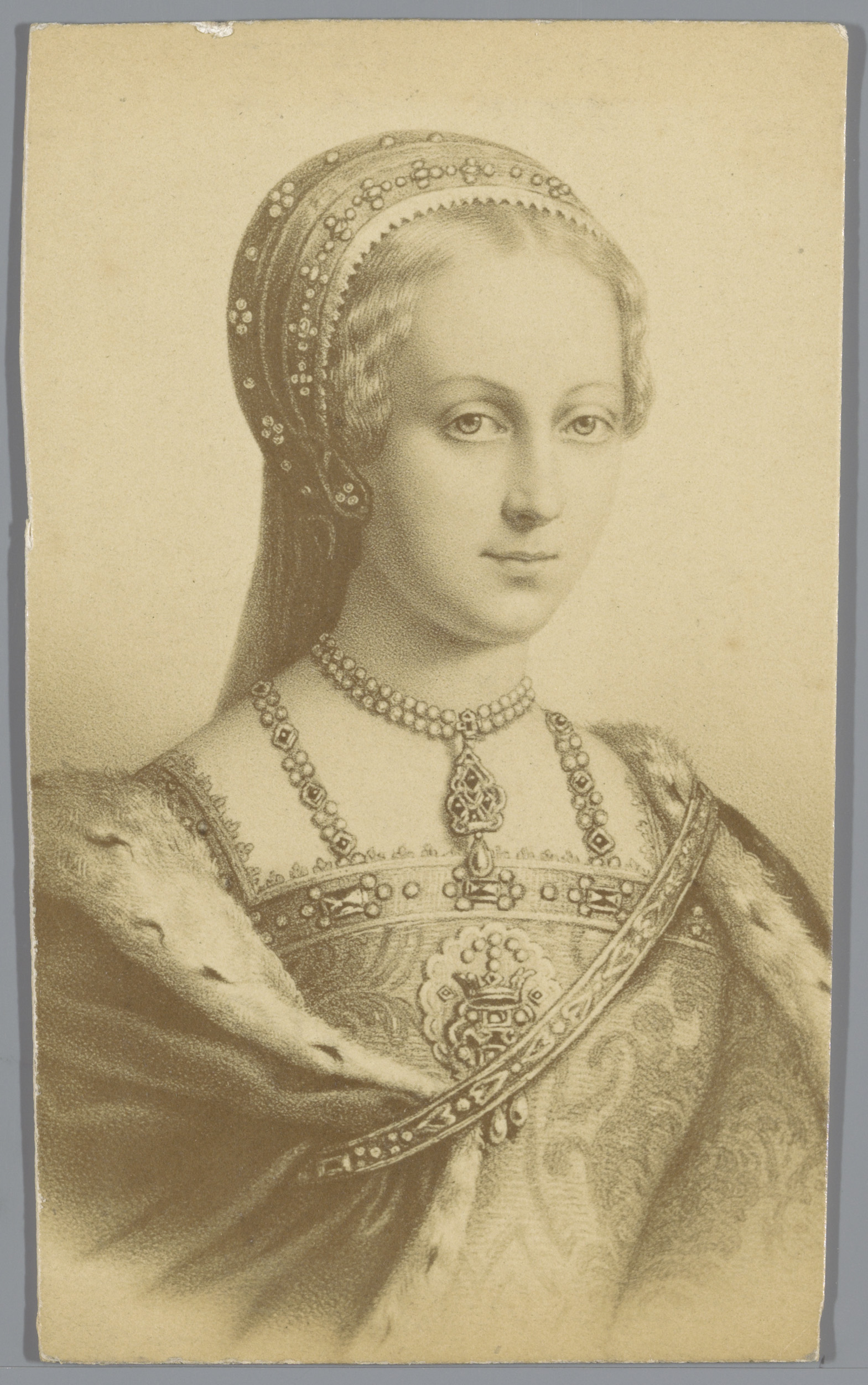 Fotoreproductie van een portret van een onbekende vrouw