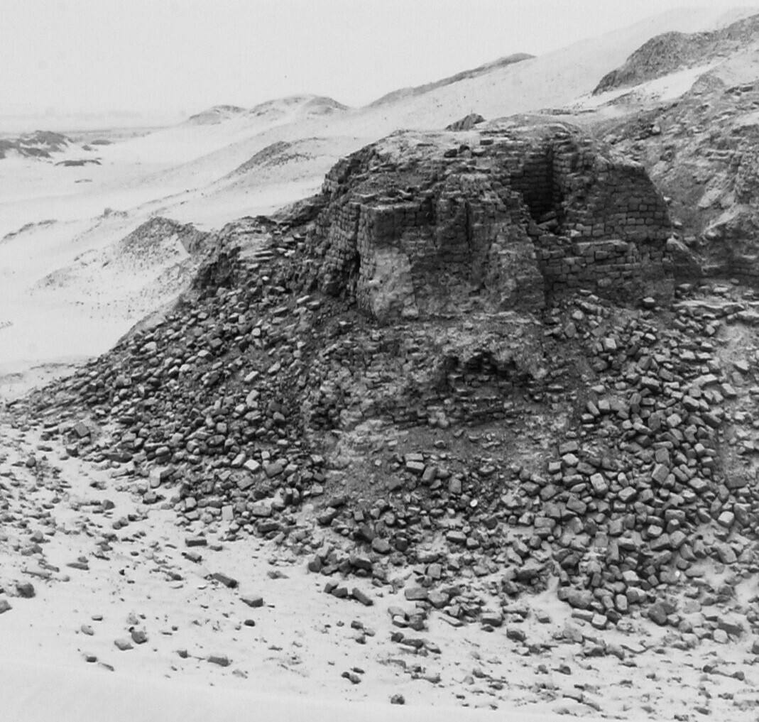 Ruïne te Chan Chan. Archeologen tijden opgravingen
