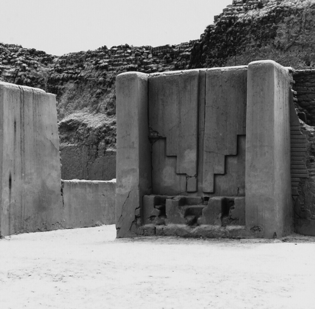 Ruïnes te Chan Chan. Gerestaureerde poort met zgn. Z...
