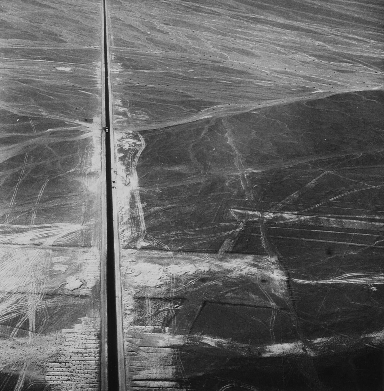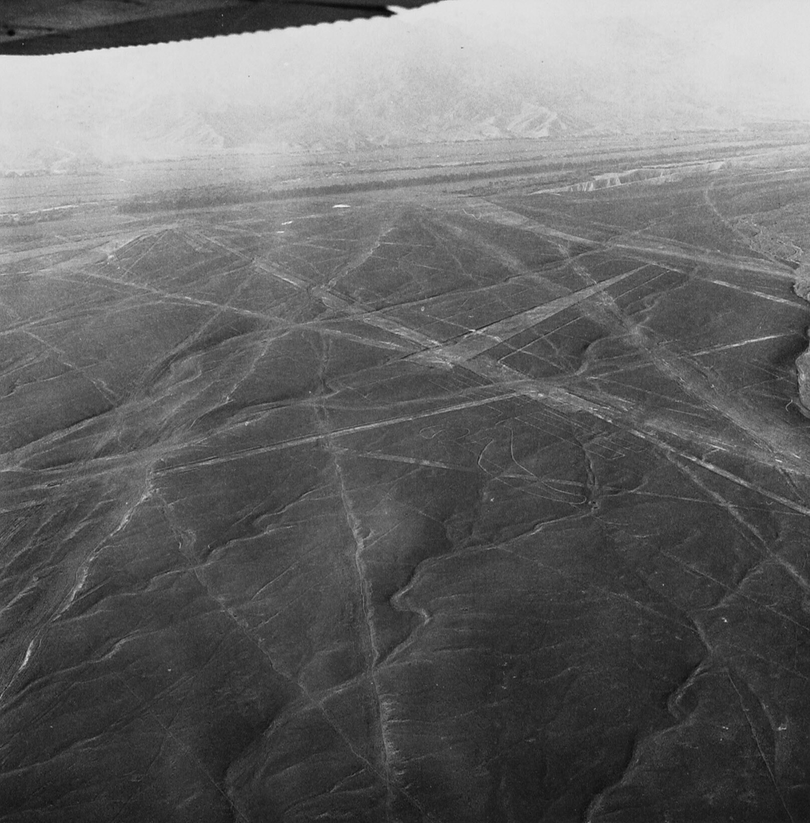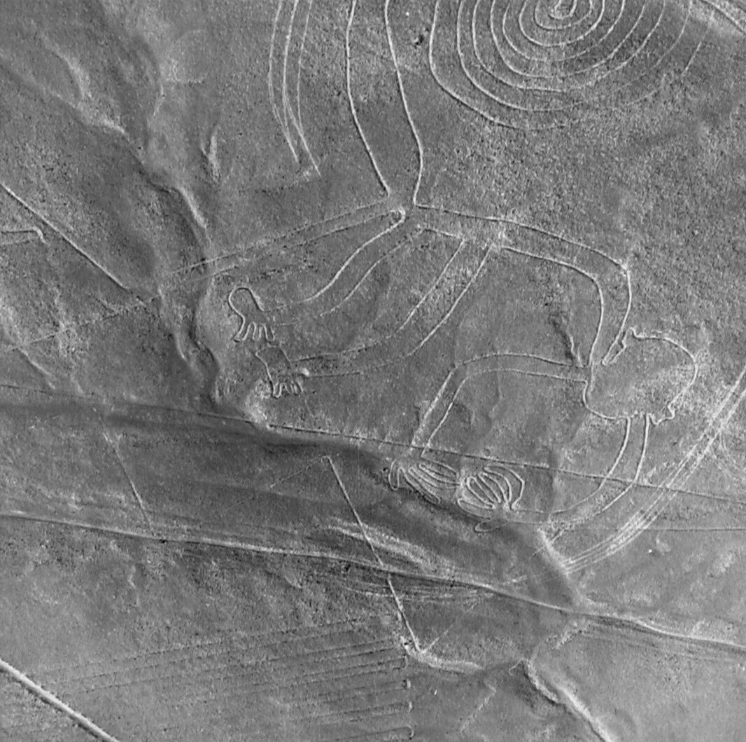 Luchtopname van de Nasca lijnen in het woestijn gebi...