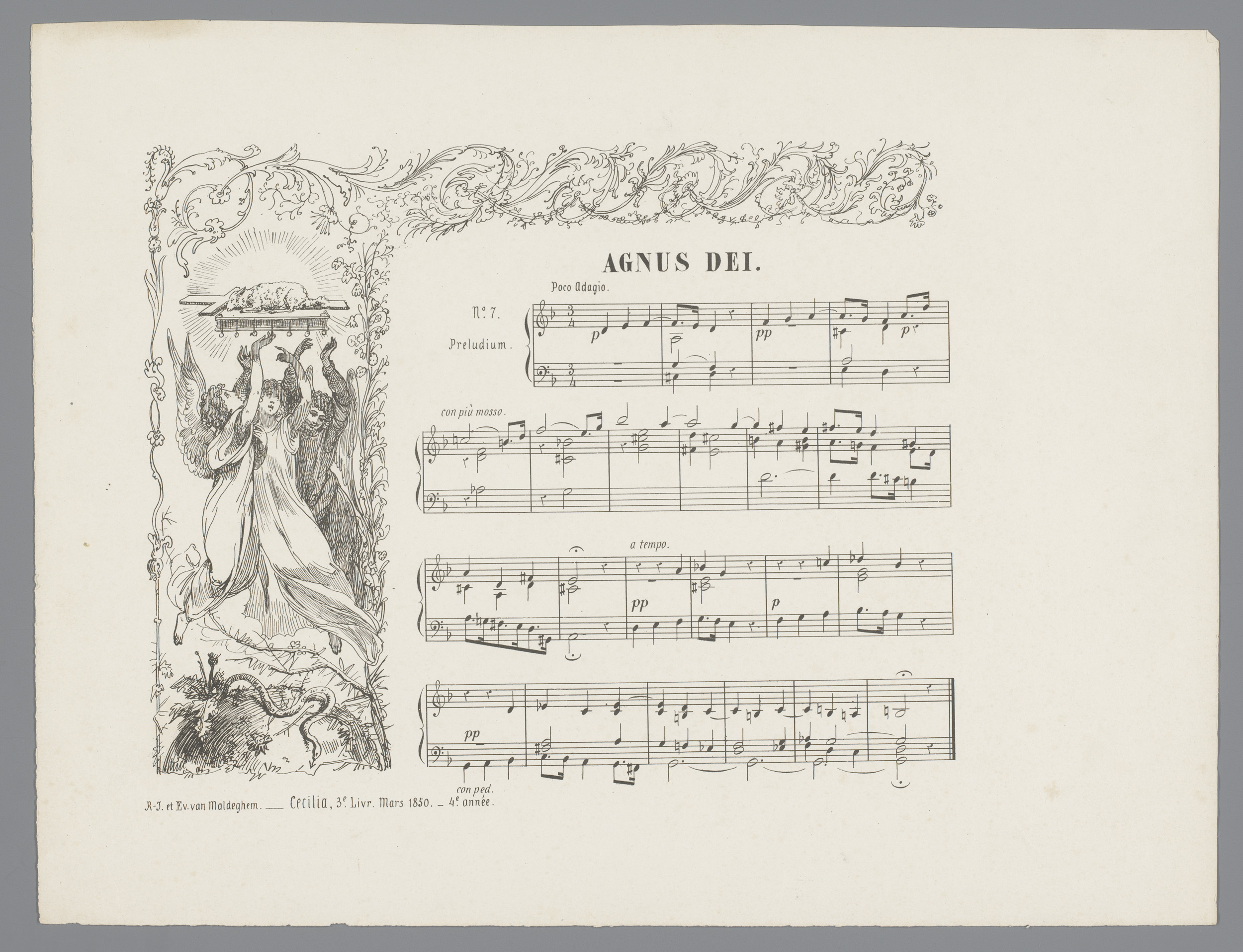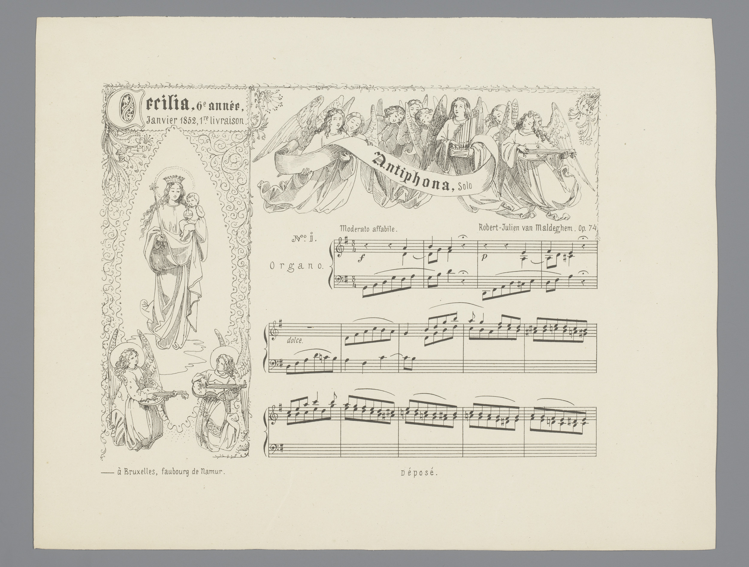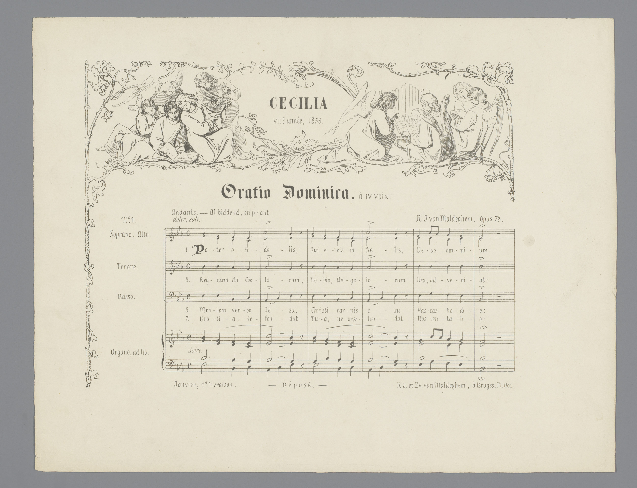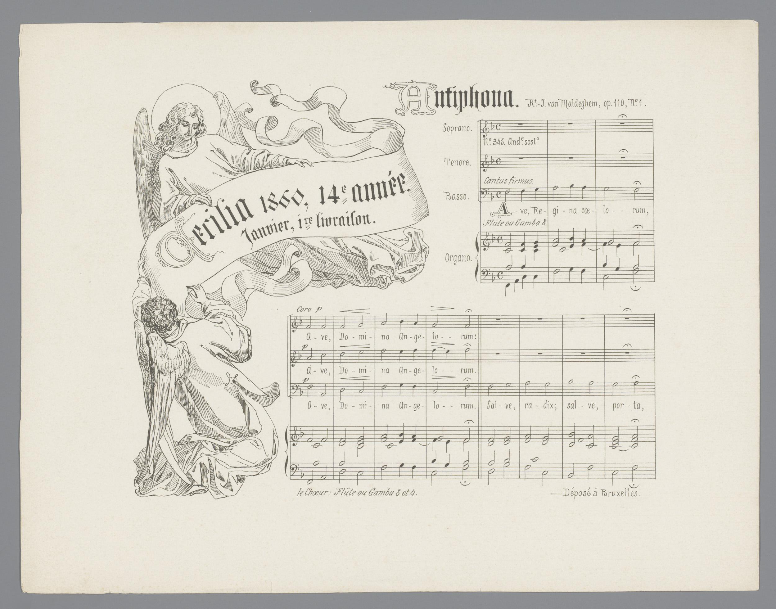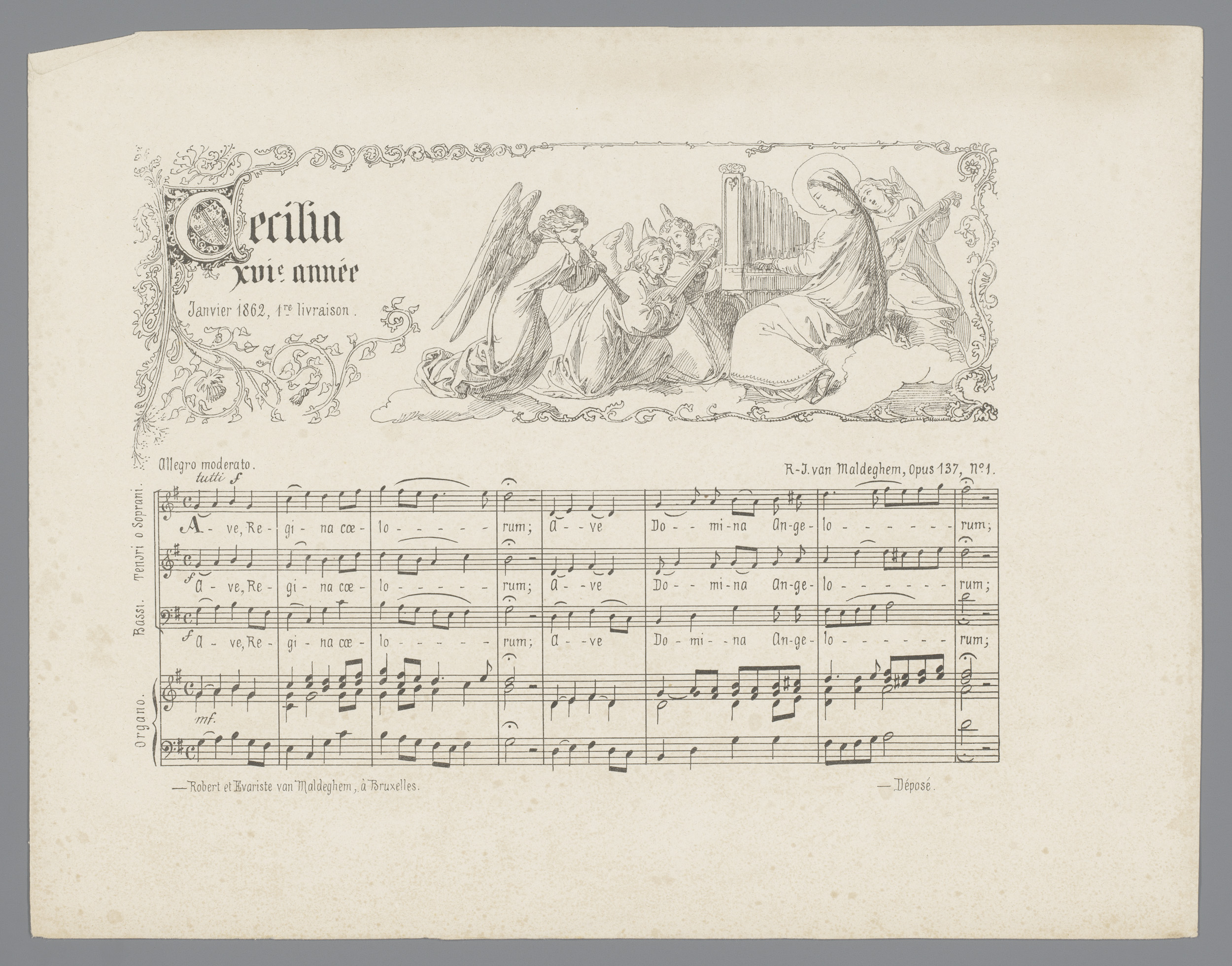 Vijf engelen en de heilige Cecilia met muziekinstrum...
