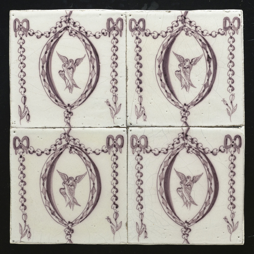 Tegelveld bestaande uit vier tegels van keramiek met...