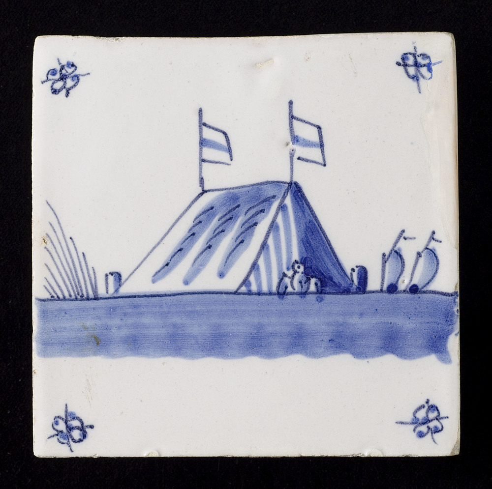 tegel van aardewerk met tinglazuur, voorstellende: h...
