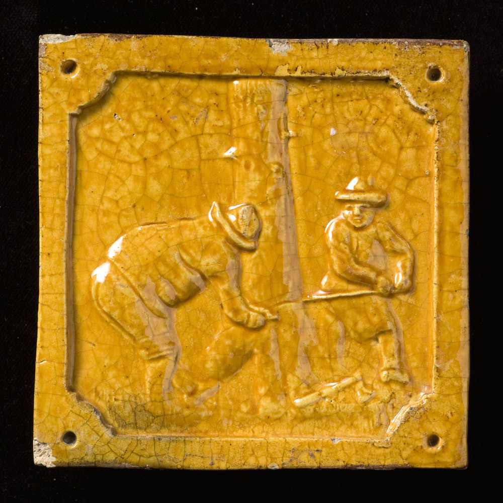 Haardtegel van keramiek, relieftegel, voorstellende ...