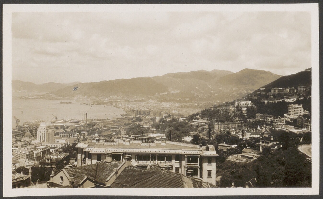 Zicht op de stad Hong Kong, op de achtergrond zee en...