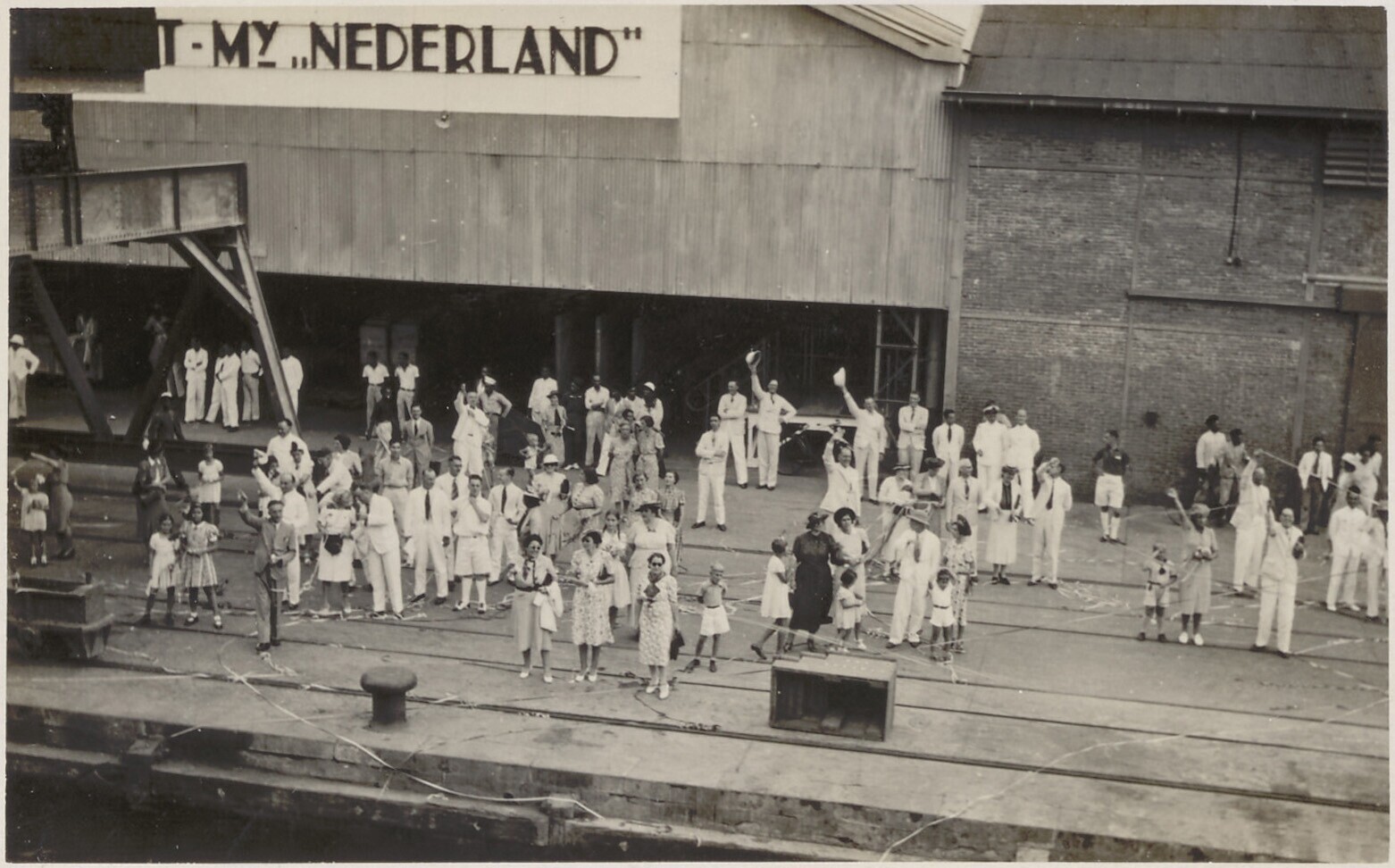 Kade van Belawan met zwaaiende mensen bij het vertre...