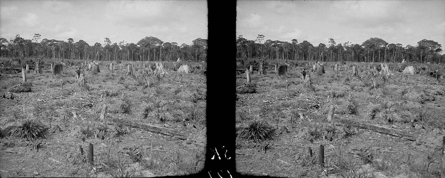 Weg van Paramaribo naar Coroni, rechts een Balataboom