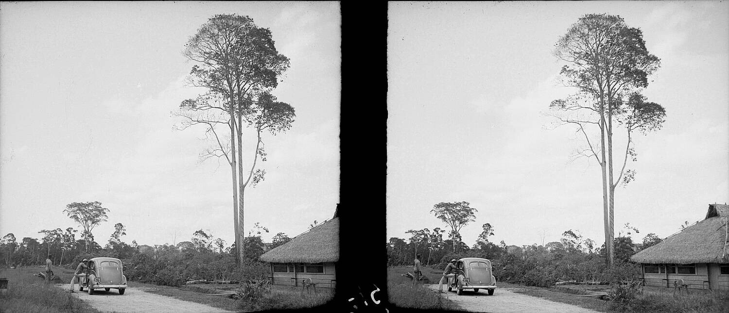 Weg van Paramaribo naar Coroni, rechts een Balataboom