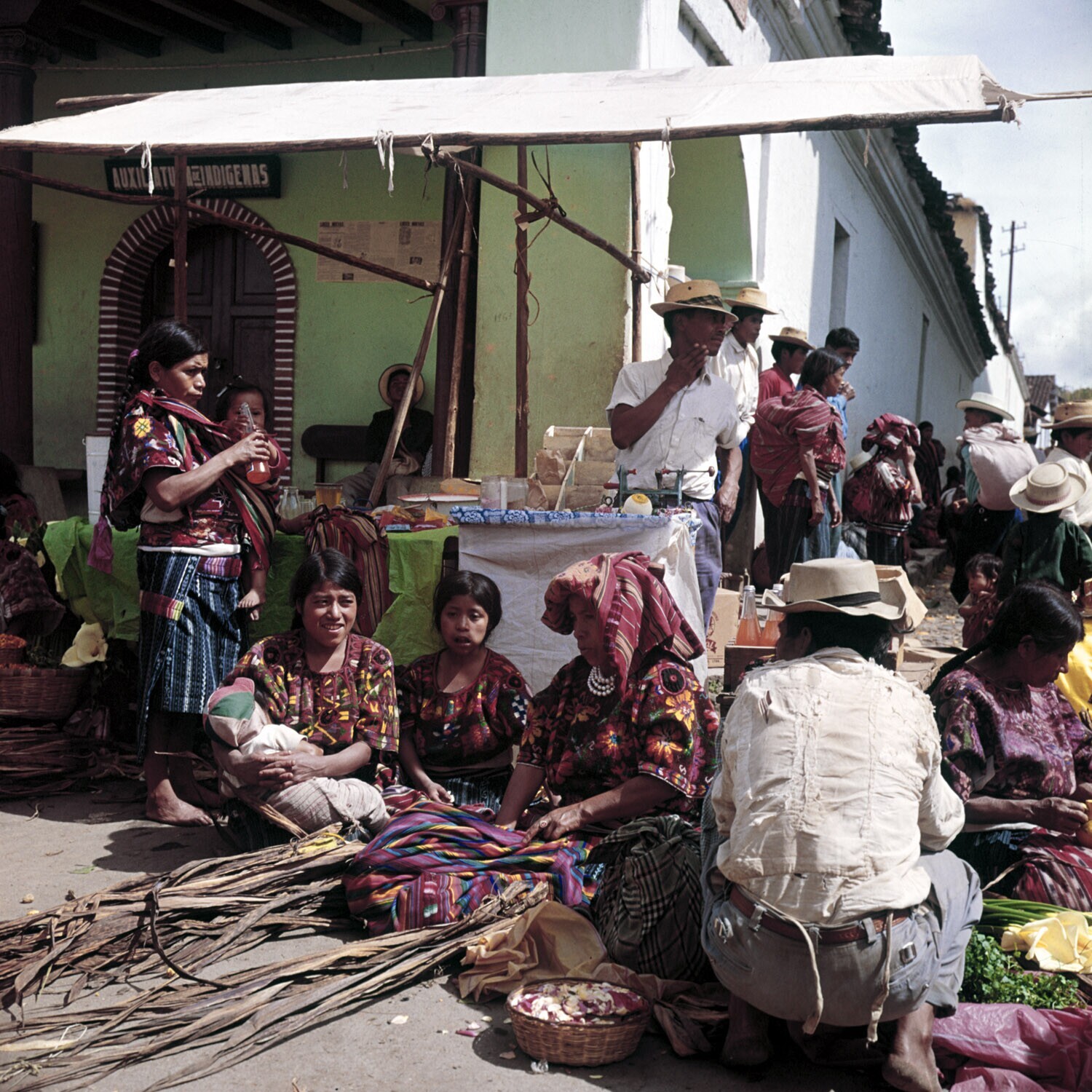 K'iche' mannen, vrouwen en kinderen op de markt te C...
