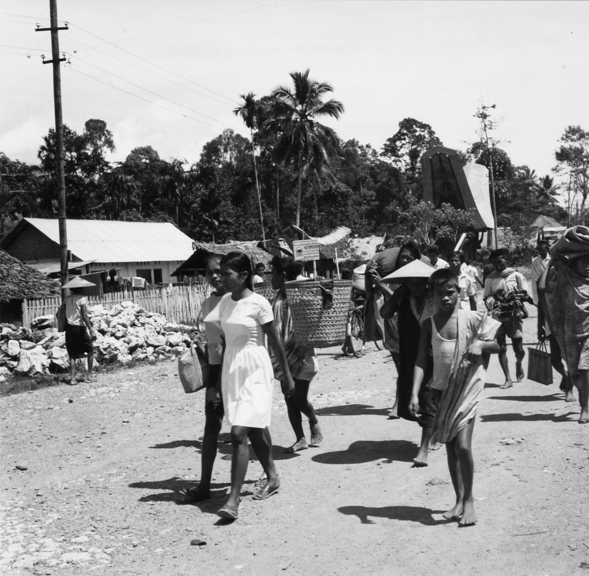 Mensen uit naburige dorpen komen naar de markt te Ra...