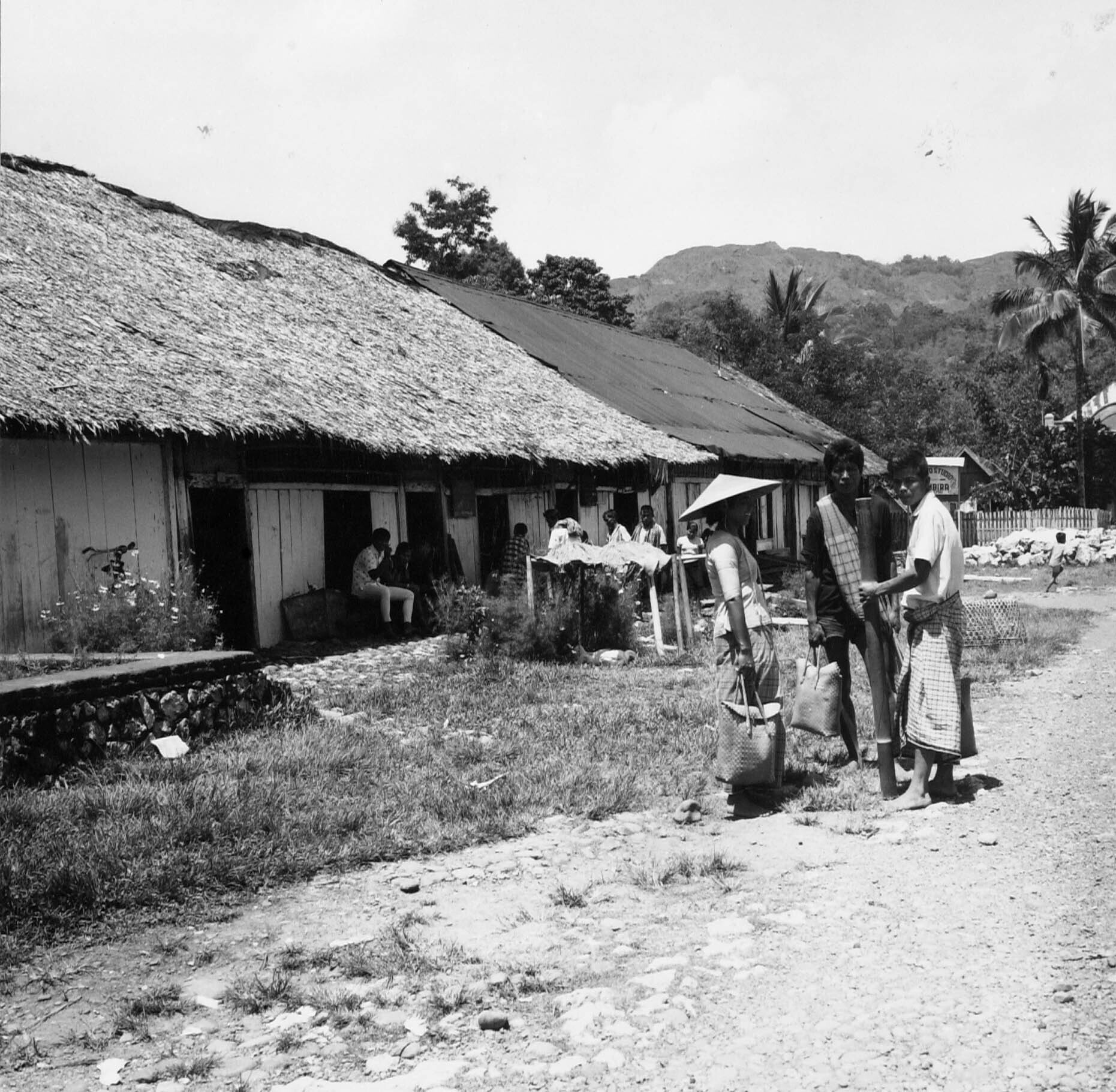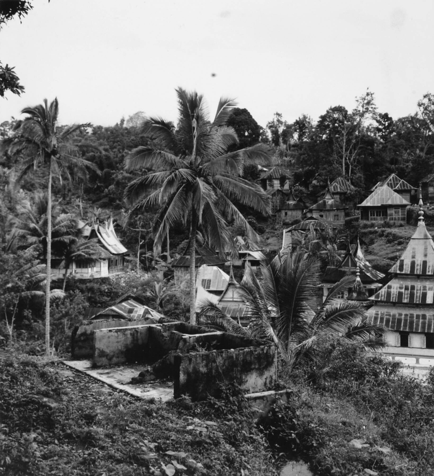 Bebouwing achter wallen in de dorpsstraat van Gua Gajah
