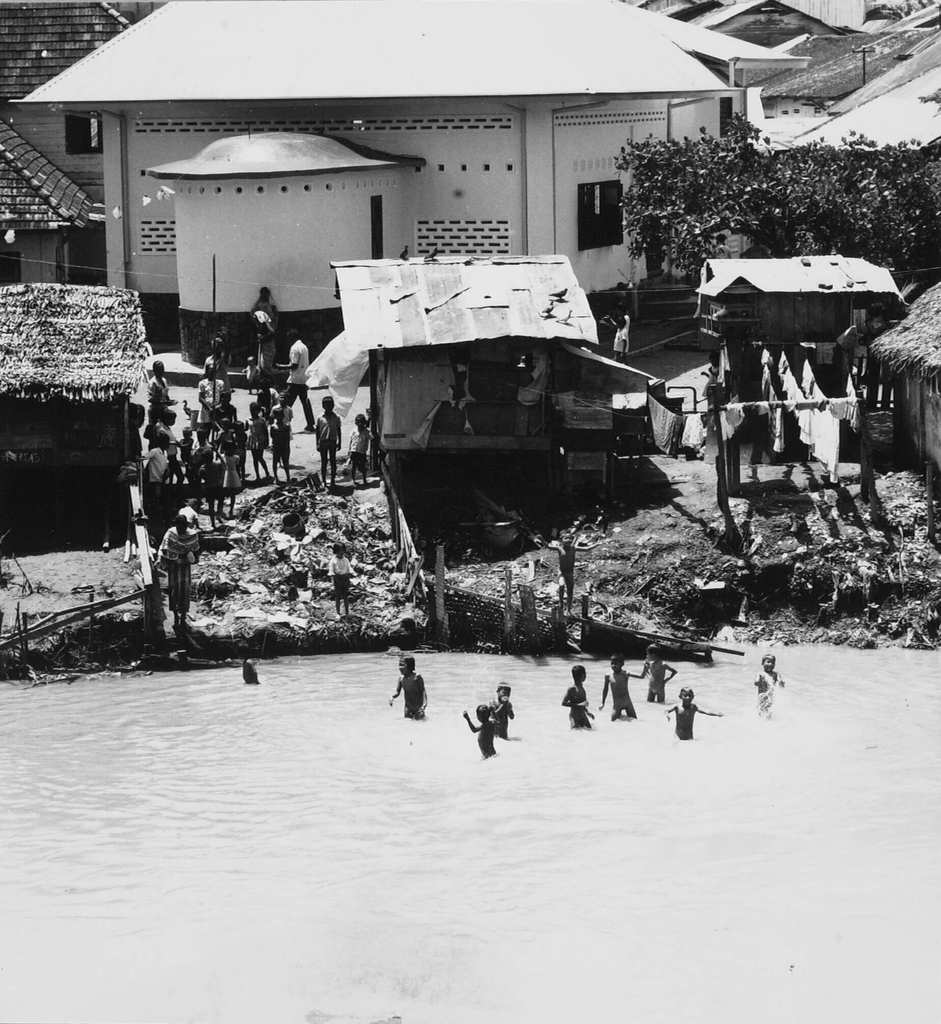 Gracht aan de Jalan Pekojan met op de voorgrond bade...