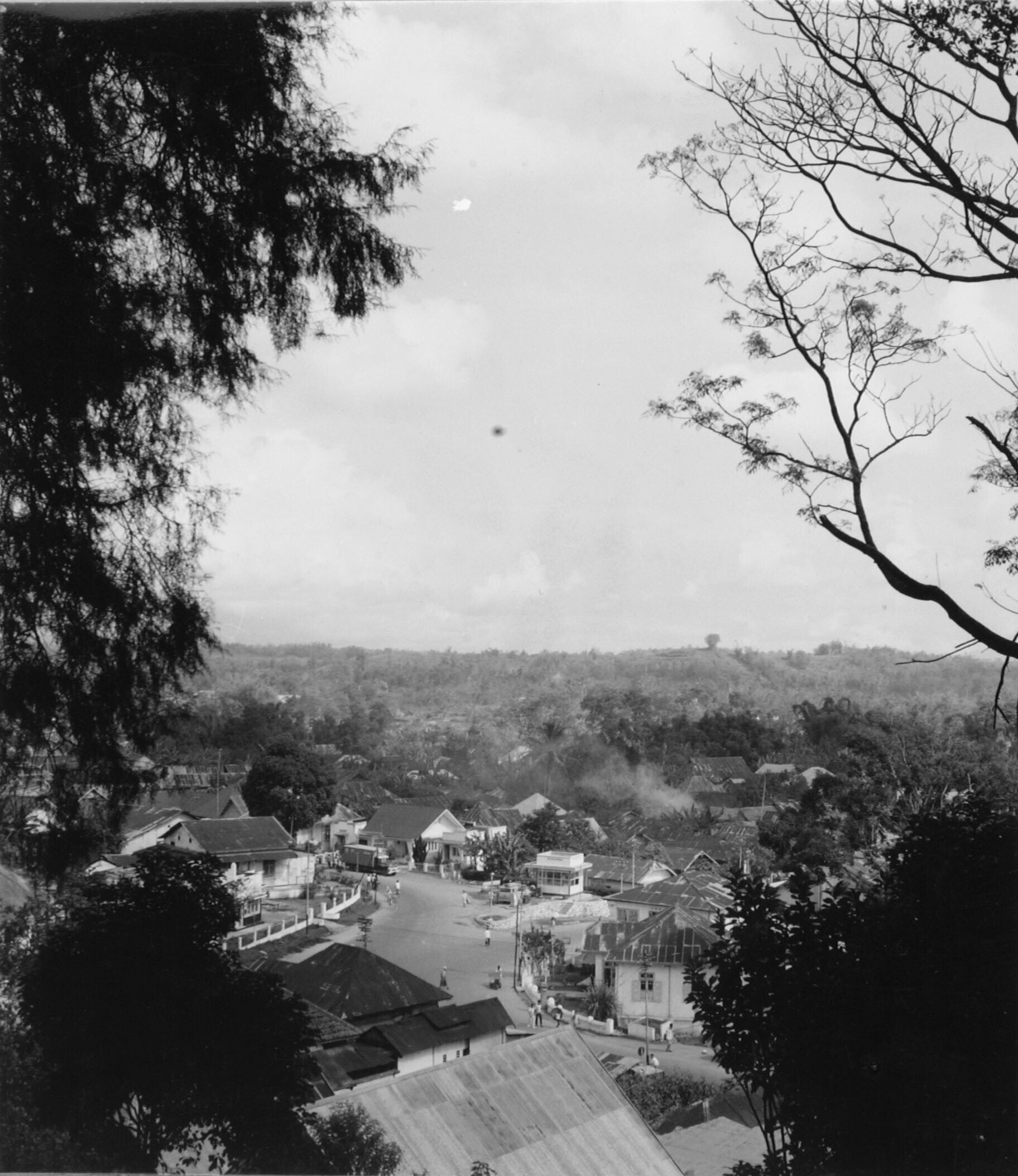 Gezicht op Palembang aan de rivier, met op de voorgr...