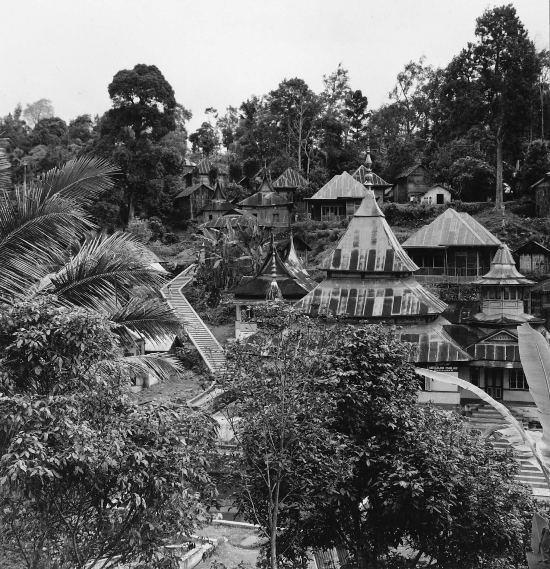 Dorpsgezicht met aan de linker kant een kleine tempe...