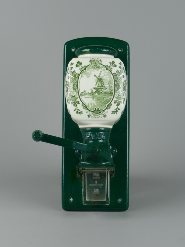 koffiemolen van keramiek en metaal met glazen opvang...