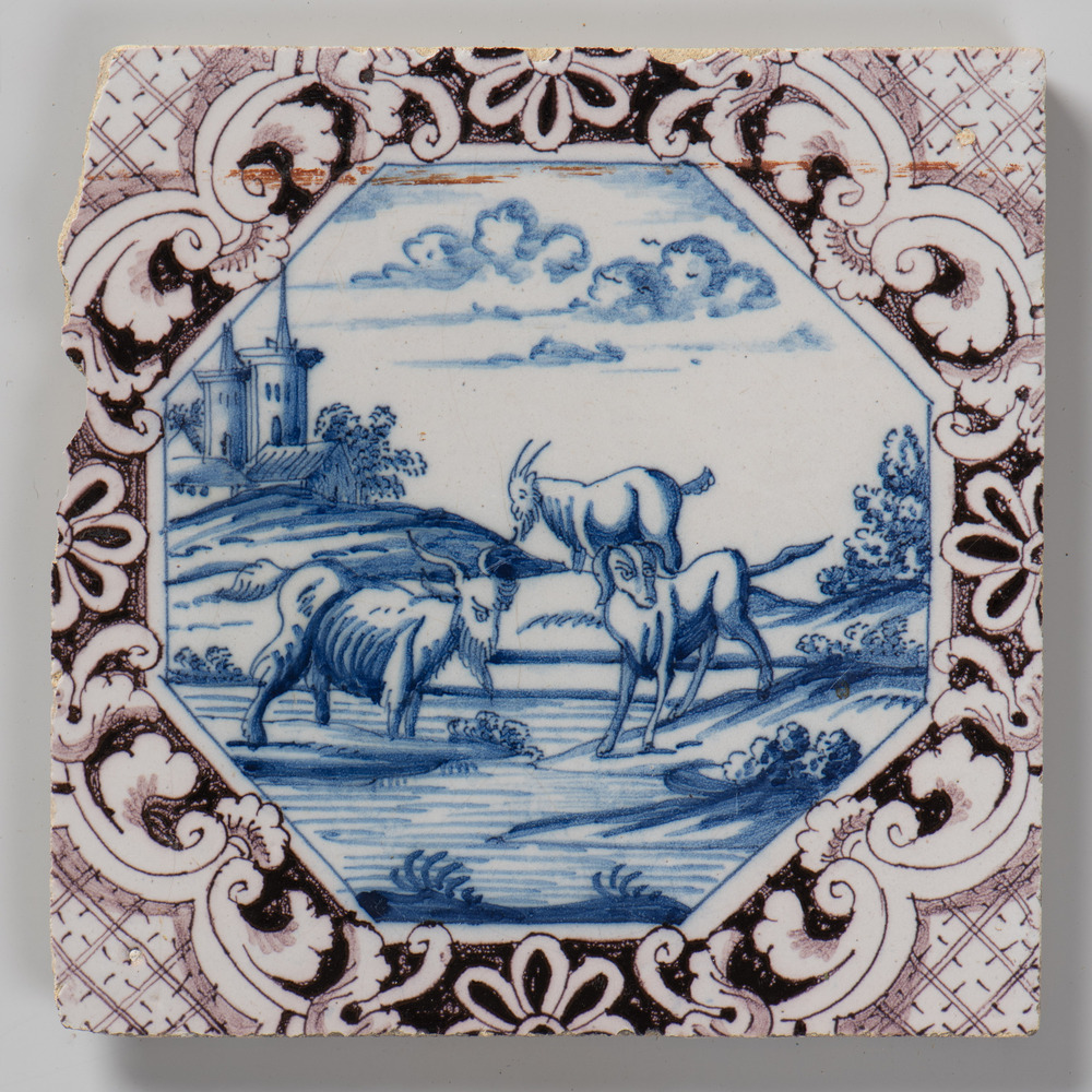 tegel van aardewerk met tinglazuur, voorstellende: h...