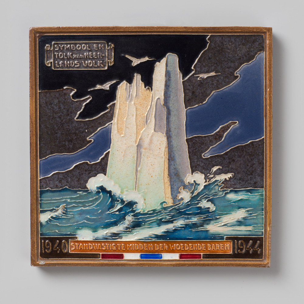 Tegel in cloisonné-techniek, voorstellende rots in d...