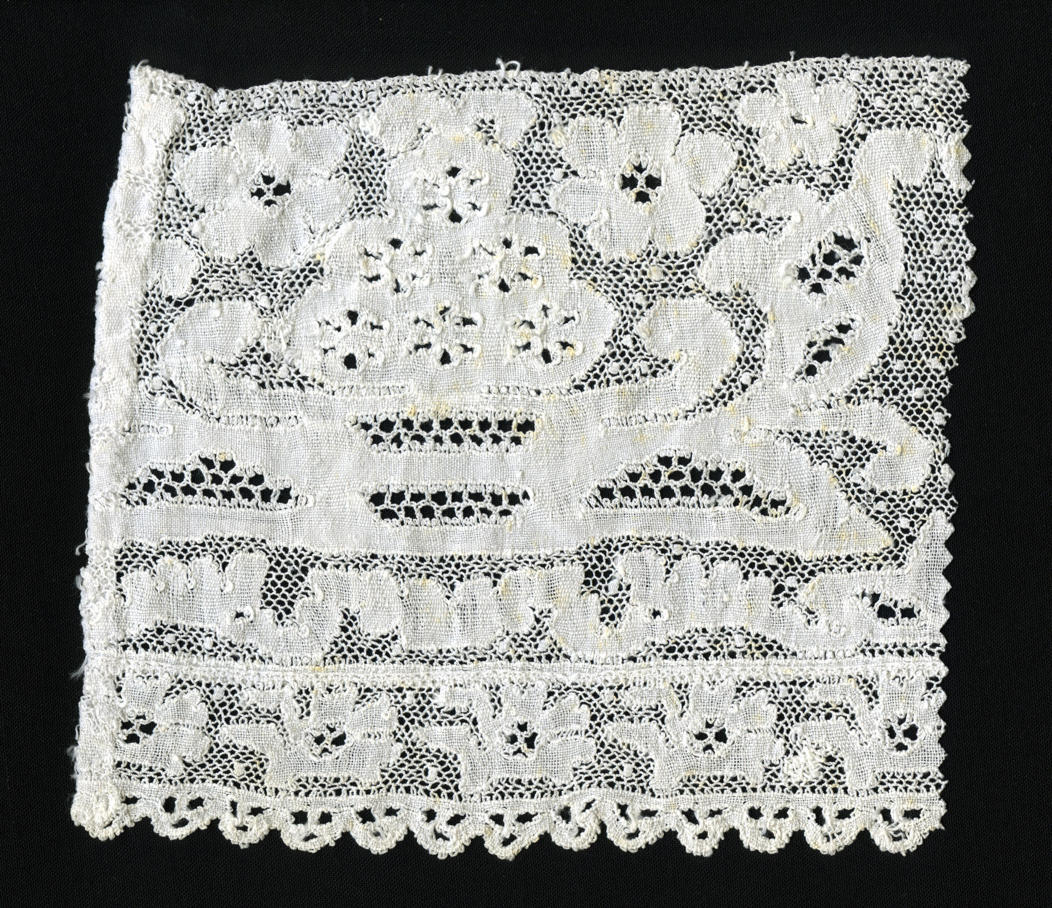 Stofstaal van 'pluumkant' voor muts, Zuid-Beveland (...