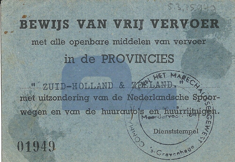 Bewijs van vrij vervoer in de provincies Zuid-Hollan...