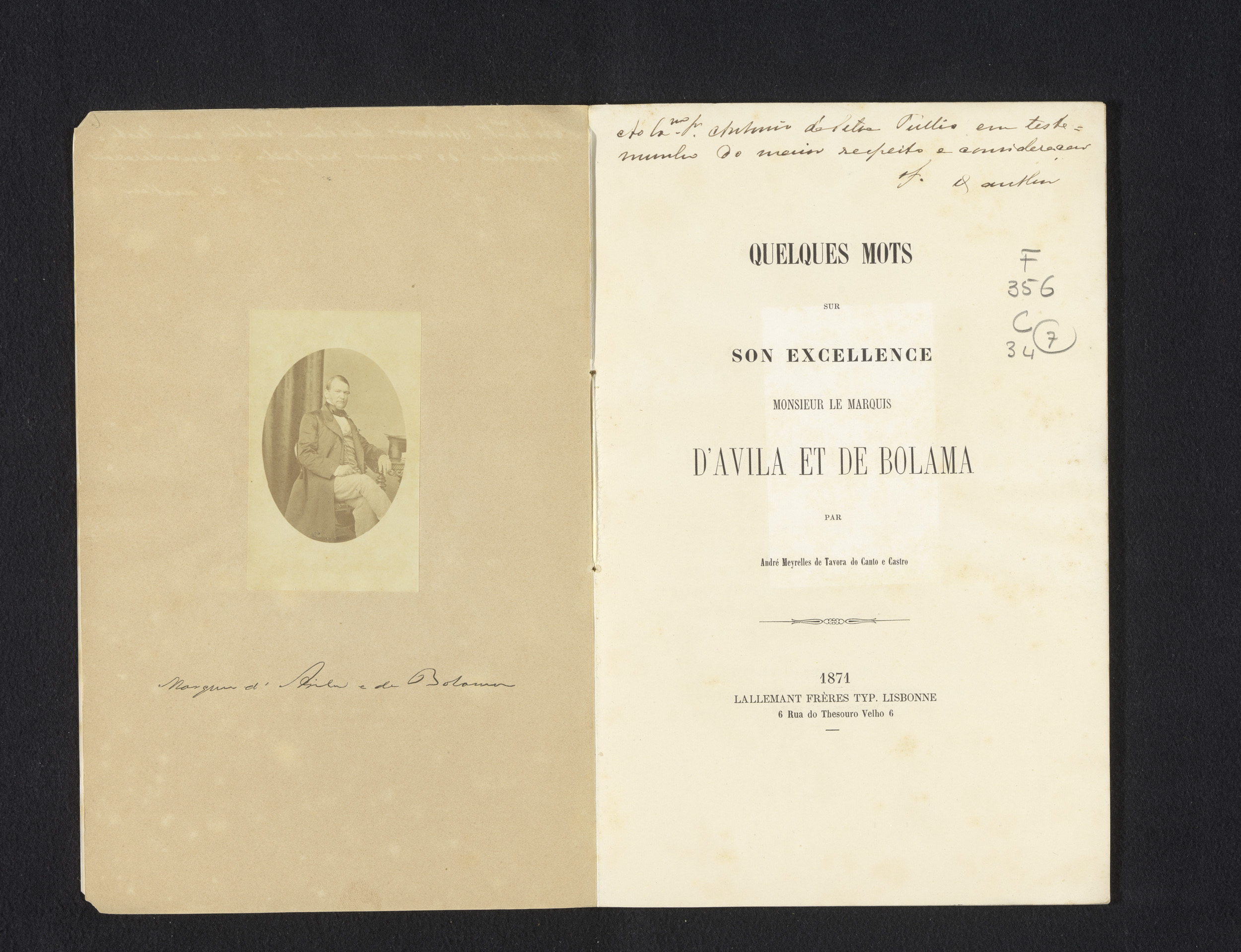 vermeld op object Meyrelles de Tavora do Canto e Castro, André