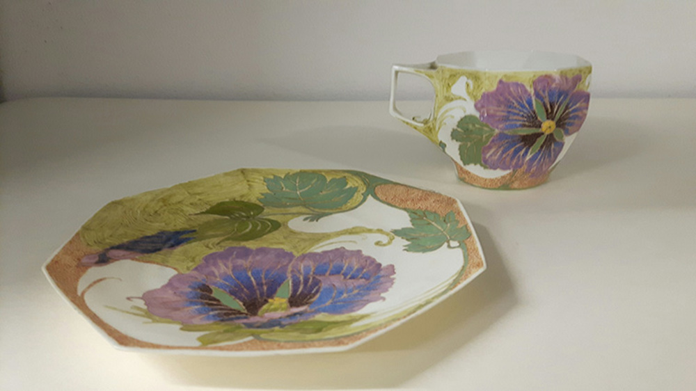 Kop en schotel van eierschaalporselein
