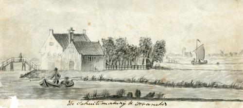 Tekening met penseel en inkt van de Schuitenmakerij ...