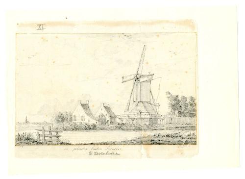 Pentekening van de pelmolen buiten Franeker door Pie...
