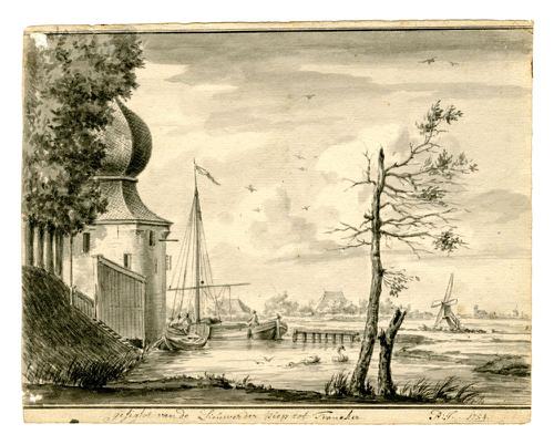 Tekening van de Noorderpoort in Franeker
