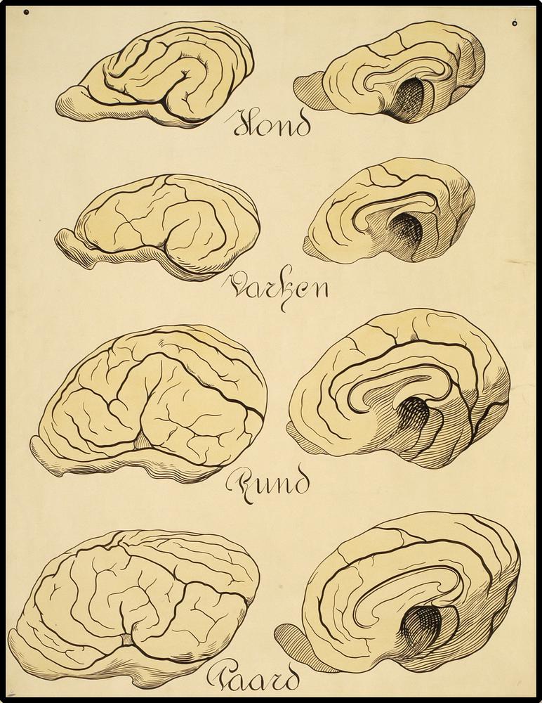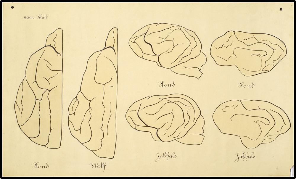Onderwijsplaat m.b.t. de hersenen van hond, wolf en ...