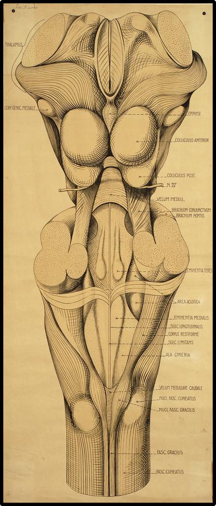 Onderwijsplaat m.b.t. de hersenstam van de hond